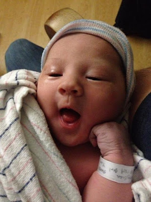 I got in the shower and five minutes later it felt like I got hit by a train. I grabbed the side of the shower for support and I'm pretty sure I screamed because Hans came running. The contractions were so hard I couldn't stand up, couldn't speak, couldn't even really move until it passed. Hans started timing them and was surprised to find that they were two minutes apart. He wanted to go to the hospital, but I had always heard to do as much of early labor at home as possible - if you go to the hospital too early, they may send you home. I stayed in the shower until the hot water ran out and then I was kneeling on the floor next to the bed and kind of hanging off the bed to take the pressure off my back. After two hours of this, Hans was convinced this was not "early labor" and called our doctor. They asked if we could come in to the office and they would check me to see if it was time to go to the hospital.